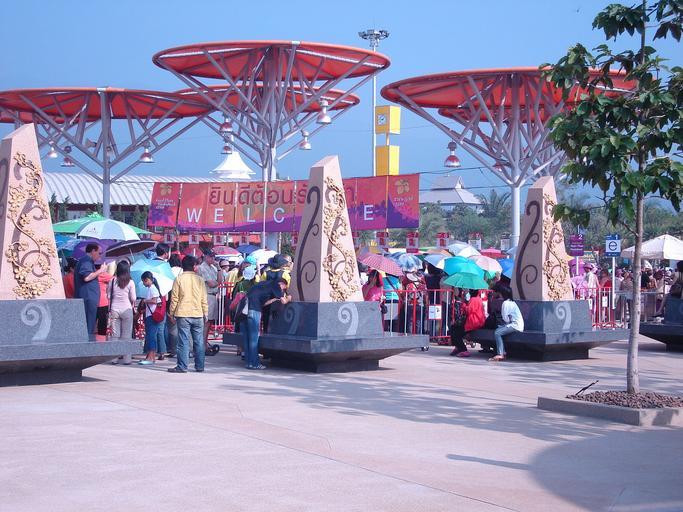 Keywords: RFE06 welcome.jpg in Royal Flora Expo 2006 Chiangmai Thailand own Love Krittaya Royal Flora Expo 2006 People with umbrellas