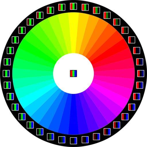 | Keywords: RGB color wheel 10.svg en RGB color wheel 10° and RGB pixels 2013-06-25 03 23 16 own László Németh <gallery> Image RGB color wheel pixel 5 svg 72 colors with RGB pixels Image RGB color wheel pixel 15 svg 24 colors with RGB pixels Image RGB color wheel pixel 30 svg 12 colors with RGB pixels Image RGB color wheel 360 svg 360 colors Image RGB color wheel 72 svg 72 colors Image RGB color wheel 36 svg 36 colors Image RGB color wheel 24 svg 24 colors Image RGB color wheel 12 svg 12 colors </gallery> Valid SVG Created with LibreOffice ; Created in LibreOffice 4 with this LibreLogo program ; Usage Put this code into an English language document in LibO Writer ; and click on the Start icon of the View»Toolbars»Logo toolbar TO subpixel r g b size FILLCOLOR r g b RECTANGLE size 3 size END TO pixel r g b where width z HEADING v PENSIZE IF where -1 ; central RGB pixel for white distance 0 PENCOLOR BLACK distance 150 + 1 5 width PENCOLOR WHITE PENUP HEADING where-width FORWARD distance HEADING 3h PENSIZE width/5 PENDOWN SQUARE 1 5 width PENUP BACK width/2 subpixel r 0 0 width/2 FORWARD width/2 subpixel 0 g 0 width/2 FORWARD width/2 subpixel 0 0 b width/2 BACK width/2 HEADING where-width BACK distance HEADING z PENSIZE v END TO pie r g b where width FILLCOLOR r g b CIRCLE 300 300 where where + width pixel r g b where width FILLCOLOR r 0xff g 0xff b 0xff CIRCLE 300 300 180 + where 180 + where + width r r 0xff g g 0xff b b 0xff pixel r g b 180+where width END PENDOWN HOME CLEARSCREEN HIDETURTLE i INPUT Level or Enter level 2 IF i i 2 i INT i PENCOLOR INVISIBLE size 360/ 12 i LEFT size 1 5 ; PICTURE RGB_color_wheel_ d svg size ; from LibreOffice 4 1 1 PICTURE FILLCOLOR BLACK CIRCLE 300 + size 6 FILLCOLOR WHITE CIRCLE 300 REPEAT 2 i+1 u REPCOUNT-1 255/ 2 i pie 255 255 - INT u 0 REPCOUNT size size REPEAT 2 i u REPCOUNT 255/ 2 i pie 255 0 INT u 60 + REPCOUNT + 1 size size REPEAT 2 i-1 u REPCOUNT 255/ 2 i pie 255 - INT u 0 255 120 + REPCOUNT + 1 size size FILLCOLOR WHITE CIRCLE 100 pixel 255 255 255 -1 size cc-zero Uploaded with UploadWizard Colorwheels Images with LibreLogo source code |