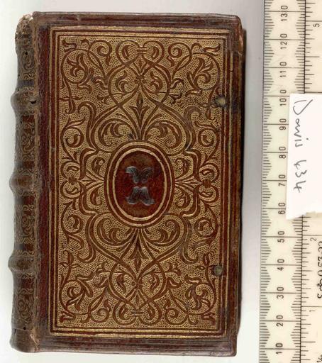 Keywords: Rhetoricorum... - Upper cover (Davis434).jpg Style Panel design; Caption Upper cover; Colour Brown; Edge Unspecified exhibition history Decorative Technique Tooled in silver Panel stamp in gold; Cover Material Goatskin includes morocco turkey etc For other French 16c bindings see Marie-Pierre Laffitte Fabienne Le Bars Reliures royales de la Renaissance Paris 1999 Second half of the century object history Text 1570; Lyons; Unspecified object type Cc-zero place of creation Binding France place of discovery Unspecified British Library image http //www bl uk/catalogues/bookbindings/LargeImage aspx RecordId 020-000004082 ImageId ImageId 41646 Copyright BL Rhetoricorum Uploaded with GWToolset Rhetoricorum - Upper cover Davis434 http //www webarchive org uk/bldatasets/bindings/6161_4 jpg Bookbinding 16th-century bookbinding |