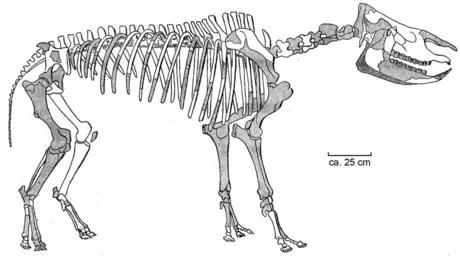 Keywords: Rhinoceros (Ceratorhinus) tagicus.jpg en Historical graphic restoration of the Budenheim rhinoceros an almost complete skeleton of the species Protaceratherium minutus then published as Rhinoceros Ceratorhinus tagicus from the lowest Miocene MN2 of the Mainz Basin de Historische zeichnerische Skelettrekonstruktion des žBudenheimer Nashorns eines Vertreters der Spezies Protaceratherium minutus seinerzeit publiziert unter dem Namen Rhinoceros Ceratorhinus tagicus aus dem untersten Miozän MN2 des Mainzer Beckens fig 1 on p 351 in Le Rhinoceros Ceratorhinus tagicus du MusĂ©e de Francfort-sur-Main Oligocène supĂ©rieur de Budenheim prĂ©s Mayence Bulletin de la SociĂ©tĂ© gĂ©ologique de France 4th series 14 349 “365 http //jubilotheque upmc fr/img-viewer/fonds-bulsgf/GB_000089_001/Contenu/JPEG_HD/viewer html ns GB_000089_001_J3_349 jpg online FrĂ©dĂ©ric Roman 1871 “1943 1914 Protaceratherium fossils PD-old PD-1923