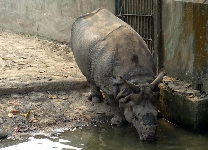 Keywords: rhinoceros one-horned animal wild wildlife endangered rhino unicornis zoo kolkata india