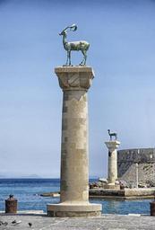 Keywords: rhodes greece port harbor water sky clouds monuments sculptures inlet hdr