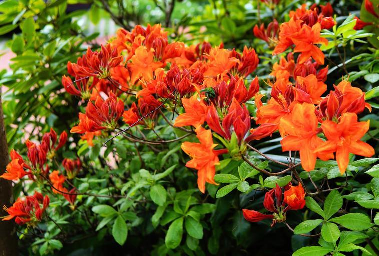 Keywords: rhododendrons bush flowers orange delicate orange colorful sweet