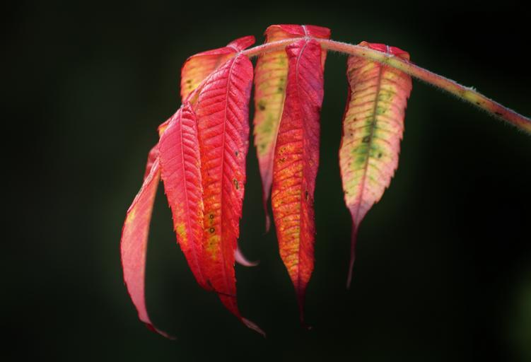 Keywords: rhus fall foliage autumn colours colorful leaves autumn leaf colorful leaves color golden autumn leaves in the autumn flora yellow orange sunny branch plant nature discolored macro macro photography
