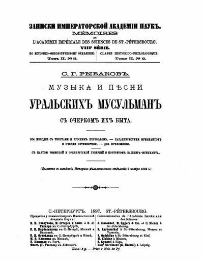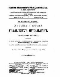 Keywords: RibakovBook.jpg Книга С Г Рыбакова Титульный лист http //borgo ucoz ru/publ/stati_i_knigi_drugikh_avtorov/muzyka_i_pesni_uralskikh_musulman_s_ocherkom_ikh_byta/4-1-0-67 comments 2014-10-24 Original uploader was Qweasdqwe PD-old Small original upload log Bashkortostan