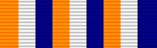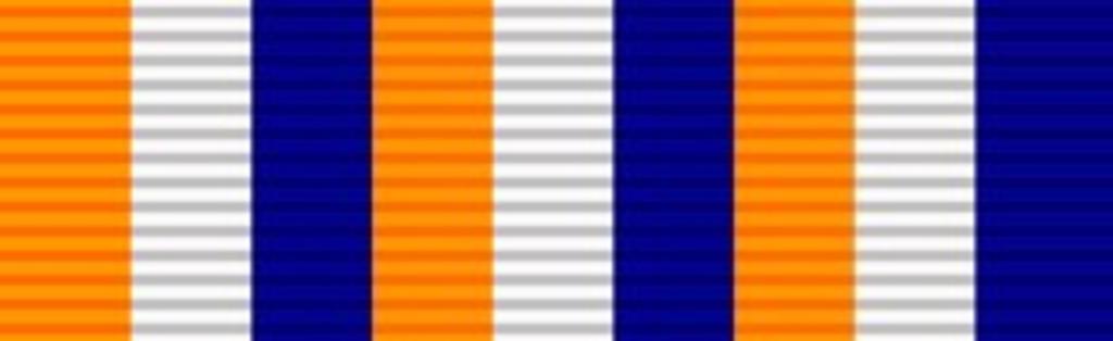 Keywords: Ribbon - Permanent Force Good Service Medal.png Size 320x98px scale 10px 1 mm Permanent Force Good Service Medal ribbon of the South African Defence Force 32 millimetres wide with three bands of orange white and blue repeated three times the outer orange and blue bands each 4 millimetres wide and the seven inner bands all approximately 3½ millimetres wide Militêre medaljelint van die Suid-Afrikaanse Weermag Medalje vir Troue Diens in die Staandemag 1961-1975 vir agttien jaar diens in die Staandemag 'n Gespe kon na dertig jaar diens bygevoeg word 'n Silwermedalje met 'n uitgeskulpte rand wat die landswapen uitbeeld Dit hang aan 'n lint verdeel in nege oranje wit en blou strepe own Col André Kritzinger 2014-07-04 x29px Clasp x29px Clasp Button CC0 Col André Kritzinger Kritzinger's decorations medals 318 Ribbon bars of South Africa 318 Ribbon bars of South Africa 1952-1993 318 |