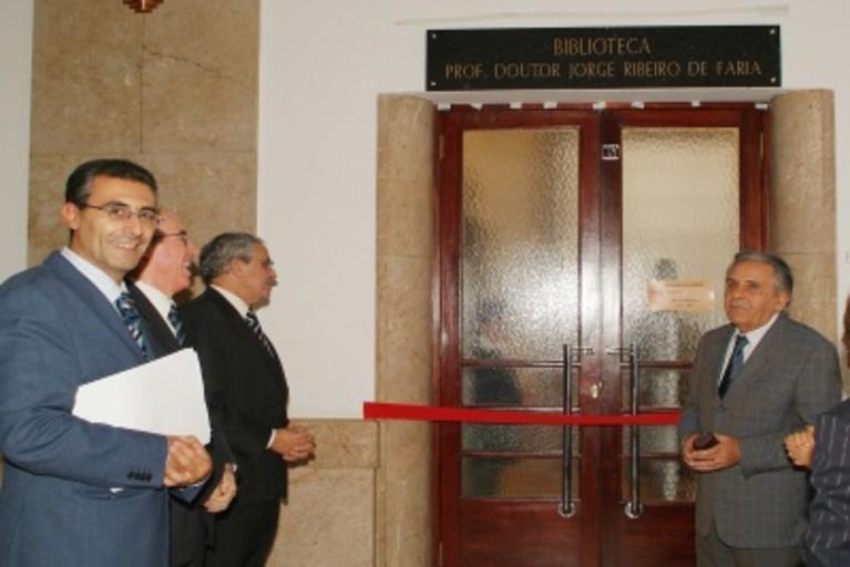 Keywords: Ribeirodefaria.jpg pt Jorge Ribeiro de Faria à direita na inauguração da biblioteca da Faculdade de Direito do Porto à qual foi atribuída o seu nome Own Curs3 2004 Free Faculdade de Direito da Universidade do Porto