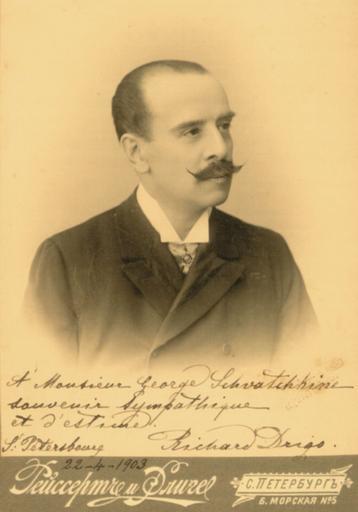 | Keywords: Riccardo Drigo -1903.jpg en Photograph of Riccardo Eugenio Drigo 1846-1930 Chef d'orchestre of the Imperial Italian Opera of St Petersburg 1878-1884 ; Kapellmeister of the St Petersburg Imperial Ballet 1886-1917 ; Chef d'orchestre of ballet and Italian opera performances of the Imperial Mariinsky Theatre Orchestra of St Petersburg 1886-1917 Noted composer of ballet music conductor and pianist 1903 Scanned from the theatre program for Sergei Vikharev's reconstruction of the ballet Raymonda for the Teatro alla Scala 2011 author PD-RusEmpire PD-old-70 PD-old Riccardo Drigo |