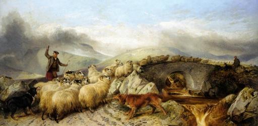 View Original:Richard_Ansdell_-_Collecting_the_sheep_for_clipping_in_the_highlands_(1881).jpg (2708x1324)