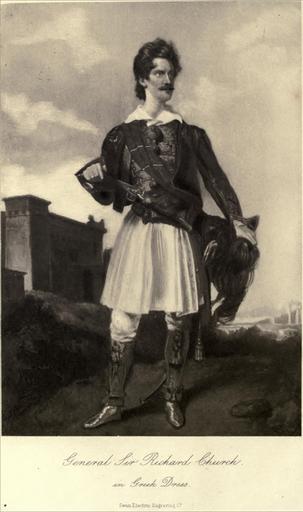 | Keywords: Richard Church in Greek Dress.jpg  en General Sir Richard Church in Greek Dress E M Church 1895 Chapters in an Adventurous Life Sir Richard Church in Italy and Greece Edinburgh W Blackwood Swan Electric Engraving Co 1895 PD-old Richard Church |
