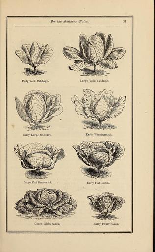 | Keywords: Richard Frotscher's almanac and garden manual for the southern states (16721911819).jpg  For the Southern States <br> 31 <br> Early York Cabbage <br> Large York Cabbage <br> Early Large Oxheart <br> Early Winningstadfc <br> Large Flat Biunb \icl <br> Early Flat Dutch <br> Green Globe Savoy <br> Early Dwarf Savoy 42388411 134054 66766 Page 31 Text http //www biodiversitylibrary org/page/42388411 1889 10 5962/bhl title 66766 Henry G Gilbert Nursery and Seed Trade Catalog Collection ; Richard Frotscher Seed Company Biodiversity Heritage Library Richard Frotscher's almanac and garden manual for the southern states 1885 Catalogs Seed industry and trade Seeds Trade catalogs Vegetables U S Department of Agriculture National Agricultural Library bhl page 42388411 dc identifier http //biodiversitylibrary org/page/42388411 bhlGardenStories Cabbage u s department of agriculture national agricultural library bhlgardenstories Information field Flickr posted date ISOdate 2015-03-23 CC-BY-2 0 BioDivLibrary https //flickr com/photos/61021753 N02/16721911819 2015-08-23 22 53 43 cc-by-2 0 PD-old-70-1923 Cabbage Richard Frotscher's almanac and garden manual for the southern states Photos uploaded from Flickr by Fæ using a script |