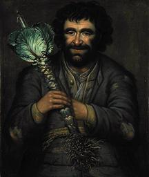 | Keywords: Richard Waitt cromartie fool.jpg artwork Richard Waitt This grinning man holds a kail stock with a burning candle stuck in the top This helps identify him as the fool or jester of a Scottish laird who probably presided over Halloween festivities such as those described in Robert Burns' poetry Traditionally unmarried men and women pulled up kail stocks to confirm the character of their future partner A candle was then stuck into the end to make a torch This portrait painted in 1731 was possibly part of a series depicting Scottish clan members Oil on canvas 1731 National Gallery of Scotland https //www nationalgalleries org/collection/artists-a-z/w/artist/richard-waitt/object/the-cromartie-fool-pg-3256 other versions PD-old-100 Richard Waitt Portrait paintings in the National Gallery of Scotland 1731 1731 oil on canvas paintings in the United Kingdom Portrait 1731 portrait paintings from Great Britain Male 18th-century oil portraits of men at half length 1731 18th-century portrait paintings in the United Kingdom 1731 Files uploaded by Shakko from various sources Marottes Paintings of jesters Paintings of vegetables People with vegetables Portrait paintings of bearded men 1731 Portraits of jesters Vegetables of the United Kingdom |