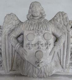 Keywords: RichardCoffinArms HeantonPunchardonChurch.JPG crosses crosslet or three bezants Detail from his Easter Sepulchre monument north wall of chancel Heanton Punchardon Church Devon own photo Lobsterthermidor <span class signature-talk >talk</span> 19 27 27 November 2013 UTC Sculpture 1523; photo 2012 St Augustine Heanton Punchardon Interiors of churches in Devon Coffin arms