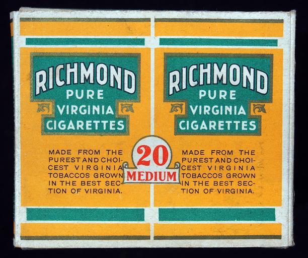 MAKE A MEME View Large Image Richmond cigarettes pack, pic1.JPG Very old packaging of a product that is not produced and not sold any more own 2014-04-13 09 32 44 Alf van Beem CC-Zero Trademarked Richmond cigarettes Cigarette packs