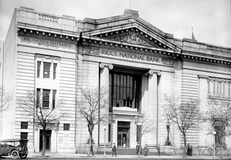 | Keywords: Riggs National Bank in 1915.jpg Riggs National Bank located at 1503-1505 Pennsylvania Avenue NW in downtown Washington D C Construction of the Classical Revival style building was completed in 1902 to the designs of architectural firm York and Sawyer The building served as a branch for PNC Bank following the dissolution of Riggs Bank in 2005 On the right is the American Security and Trust Company Building located at 1501 Pennsylvania Avenue NW Construction of the neoclassical style building was completed in 1905 also to the designs of York and Sawyer The property currently serves as a branch for Bank of America Each building the two properties are sometimes mistakenly thought to be a single building was listed on the National Register of Historic Places NRHP in 1973 In addition the buildings are designated contributing properties to the Lafayette Square Historic District a National Historic Landmark added to the NRHP in 1970 and the Fifteenth Street Financial Historic District listed on the NRHP in 2006 1915 LOC-image hec 05646 Harris Ewing PD-Harris-Ewing other versions 38 898755 -77 034121 Uploaded with UploadWizard 1915 in Washington D C American Security and Trust Company Building Riggs National Bank |