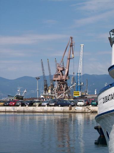 Keywords: Rijeka-harbor-2.JPG Rijeka Croatia <br> Italian and Hungarian name Fiume Own 2005 László Szalai Beyond silence Own work all rights released Public domain Port cranes in Croatia Rijeka harbour
