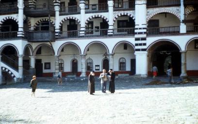 Keywords: Rila 1985 001.jpg Rila 1985 siehe Autor / see author 2010-08-19 meine Großmutter / own grandma Rila Monastery Arcades in Rila Monastery