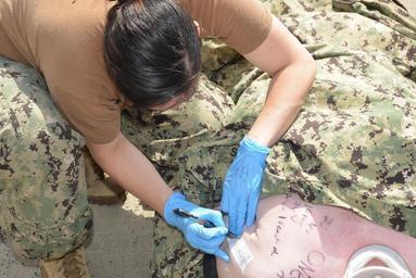 | Keywords: RIMPAC 2014 140710-N-CS762-121.jpg  en Hospital Corpsman 2nd Class Rayna Castle a U S Navy reservist assigned to Navy Cargo Handling Battalion NCHB 14 records her patient vitals during observation phase of transport to hospital ship USNS Mercy T-AH 19 as part of a humanitarian assistance disaster relief scenario during Rim of the Pacific RIMPAC 2014 Twenty-two nations 49 ships six submarines more than 200 aircraft and 25 000 personnel are participating in RIMPAC exercise from June 26 to Aug 1 in and around the Hawaiian Islands The world's largest international maritime exercise RIMPAC provides a unique training opportunity that helps participants foster and sustain the cooperative relationships that are critical to ensuring the safety of sea lanes and security on the world's oceans RIMPAC 2014 is the 24th exercise in the series that began in 1971 U S Navy photo by Chief Mass Communication Specialist Scott Kessler/Released 2014-07-10 Chief Petty Officer Edward Kessler https //www dvidshub net/image/1457898 140710-N-CS762-121 2014-07-22 11 35 PEARL HARBOR HI US PD-USGov-Military-Navy USNS Mercy T-AH-19 RIMPAC 2014 Images from DoD uploaded by Fæ |