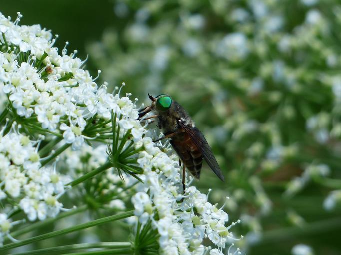 Keywords: rinderbremse green eyes green compound eye insect tabanus bovinus fly art brake tabanidae animal nature crawl risk fly itching sting green wing pain facets compound krabbeltier vectors mosquito wild carrot wild flower blossom bloom macro close spring wild plant