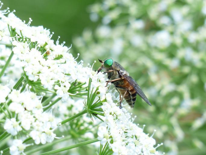 Keywords: rinderbremse green eyes green compound eye insect tabanus bovinus fly art brake tabanidae animal nature crawl risk fly itching sting green wing pain facets compound krabbeltier vectors mosquito wild carrot wild flower blossom bloom macro close spring wild plant common gadfly tabanus bromius