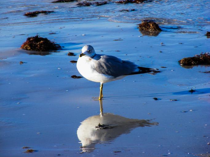 Keywords: ring-billed gull sea gulls bird feather flight fly gull nature seagull sky beach beach surf water surf ocean beach sand outside waves fort myers beach florida reflection