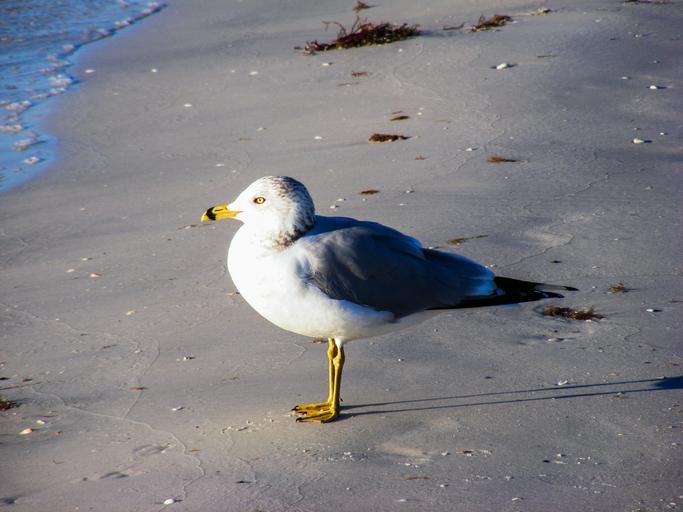 Keywords: ring-billed gull sea gulls bird feather flight fly gull nature seagull sky beach beach surf water surf ocean beach sand outside waves fort myers beach florida