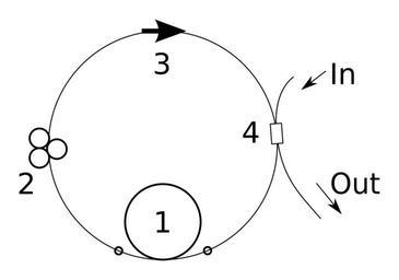 | Keywords: Ring resonator in fiber laser.svg en Typical ring resonator for fiber laser In input for pumping Out output emission 1 active fiber 2 polarizer 3 optical insulator 4 WDM-coupler ru Обычный кольцевой езонато вст оенный в волоконный лазе In излучение накачки Out выходное излучение 1 активное волокно 2 поля изато 3 оптический изолято 4 WDM-ответвитель 2011-07-20 own Alex-engraver cc-zero Uploaded with UploadWizard Fiber optics Lasers Resonators | ||||