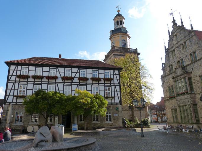 Keywords: rinteln old town north rhine westphalia historically truss building fachwerkhaus facade bar city church tree town hall gable