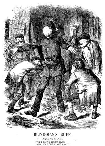 | Keywords: Ripper cartoon punch.png Cartoon criticising the police for their inability to find the Whitechapel murderer Punch 22nd September 1888 page 134 1888-09-22 Creator John Tenniel other versions <gallery> File Blind-man's buff - Punch 22 September 1888 139 - BL jpg File Blind-man's buff - Punch 22 September 1888 139 - BL jpg File Ripper cartoon punch jpg File Ripper cartoon punch jpg </gallery> PD-old-auto-1923 1914 1888 cartoons Punch magazine cartoons John Tenniel Jack the Ripper | ||||
