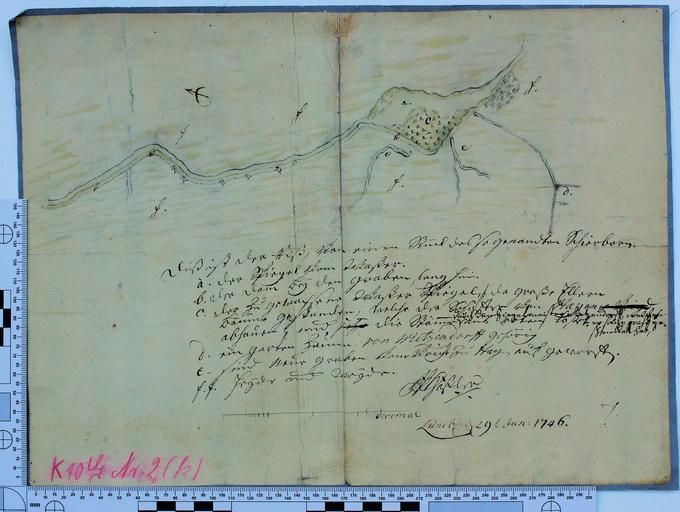 Keywords: Riss des Schierbaum 9088.jpg Die Bilder enstanden anläßlich eines Workshops im Rahmen von Skillshare 2010 in Zusammenarbeit mit dem Stadtarchiv Lüneburg Die Originale wurden freundlicherweise vom Stadtarchiv zur Verfügung gestellt <br /> Transkript der Bildbeschreibung <blockquote> Diß ist der Riß von einem Stück des so genandten Schierborn<br /> a der Spiegel vom Waßer<br /> b der Dam bey dem Graben lang hier<br /> c der Zugewachsene Waßer Spiegel da große Ellern Bäume gestanden welche der Schuster von abhauen und jetz die Stämme /Einfügung durch da dorff welchen er solchen graf zu sche hat/ aus ten laßen <br /> d Ein Garten Zaun von Miltendorff gehörig <br /> e sind neue Graben von von st zu agen aufgeworffen <br /> f f Jegde und Weide <br /> W Häßler<br /> Lüneburg d 29ten Jan 1746 <br /> </blockquote> Registratur K10 H2 k own 2010-06-09 user Joergens mi 53 2459671 10 4084140 PD-old Skillshare 2010 Stadtarchiv Stadtarchiv Lüneburg De Wikisource book leaflet Joergens mi Manuscripts Lüneburg in the 1740s 1746 documents Taken with Pentax K20D Jömi 201010 |