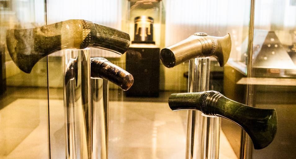 | Keywords: Ritual Hammer-Axes-2.jpg Artwork Photo from a different angle Ritual_Hammer-Axes were wide spread in Europe and the Caucasus from the Early Bronze Age until the end of the II Millennium B C Two of the four axes have the remains of gilding Nephritoid Jadeitide ; Lapis-lazuli Institution Pushkin Museum object history Discovered by Schliemann in Troy credit line accession number 166-169 own photo by Szilas in the Pushkin Museum Moscow PD-old-100 Treasures from Troy in the Pushkin Museum Axes in art |