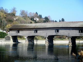Keywords: river bridge wooden bridge rheinbrücke switzerland germany rhine diessenhofen thurgau switzerland