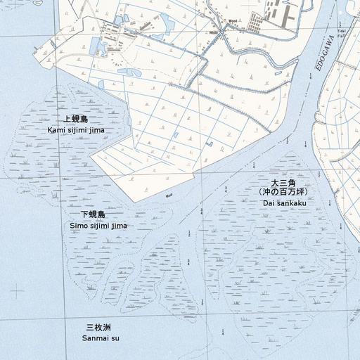 Keywords: River mouth of old edogawa in 1945.jpg en This map shows the river mouth of old Edogawa between Tokyo and Chiba prefecture in 1945 Dai sankaku Kami sijimi jima Simo sijimi jima had been filled since 1972 ja 1945年頃の旧江戸 の河口を示した図 大三角 上 島 下 島は1972年頃に埋め立てられた txu-oclc-6549645-13 jpg ams/japan_city_plans/ US army Nagasima Sakon 2010-03-21 PD-USGov Maps of the history of Japan |