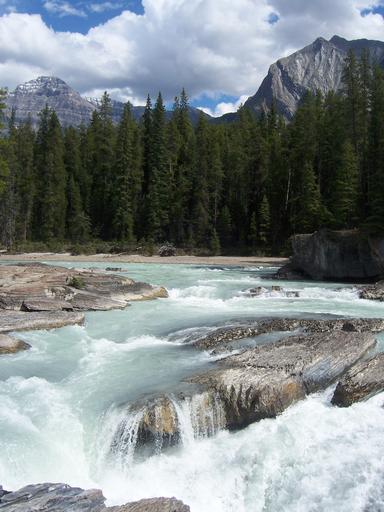 Keywords: river rapids water trees mountain blue sky flow white water fast motion outdoors rocks
