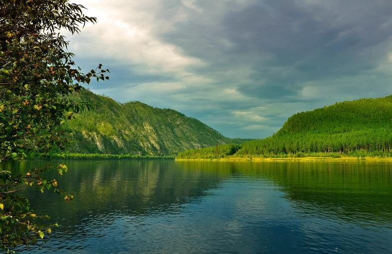 Keywords: river shore trees branches leaves grass water lake reflection rocks summer landscape travel tourism vacation