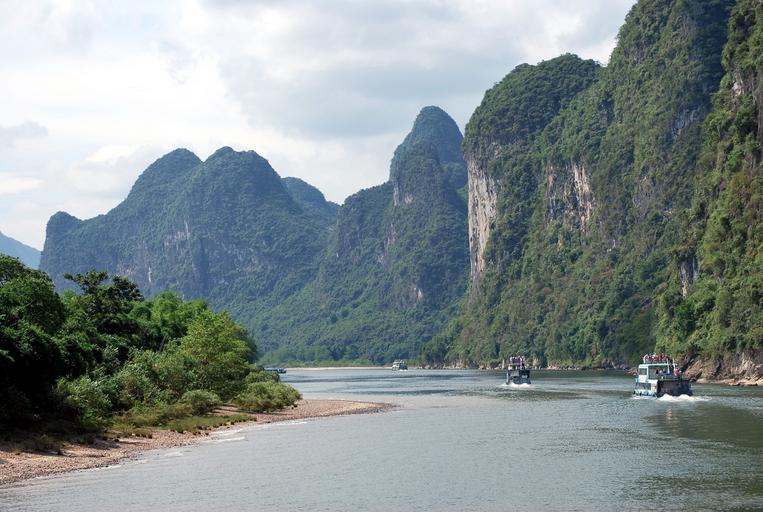 Keywords: river tour boat boats cliff mountain terrain