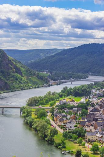 MAKE A MEME View Large Image river village city bridge clouds mountains water germany hills