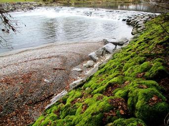 Keywords: river waterfall bank stones moss bemoost pebble leaves february thur bürglen thurgau switzerland
