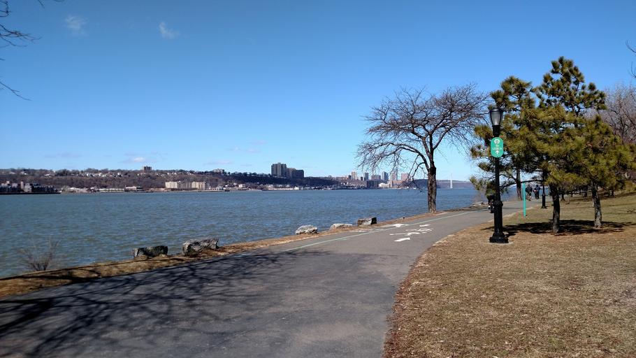 Keywords: riverside park new york city spring travel urban promenade riverside trees park walk city river