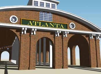Keywords: RKO backlot Atlanta railroad depot from Gone With The Wind - alt angle.jpg Other views <gallery> Image RKO backlot Atlanta railway depot from Gone With The Wind jpg </gallery> 2D image exported from a 3D model of a variant of a movie set exterior that once existed until 1976 on the now demolished RKO Studios Forty Acres backlot in Culver City California The model depicts the Atlanta railroad depot as it appeared in the 1939 cinema classic Gone with the Wind The set as constructed was a slightly downsized version as is the 3D model of the actual depot and it was featured prominently in scenes that dramatized events leading to the fall of Atlanta in that film The backlot movie set was an incomplete structure with roofing only on the side which was filmed and with a painted facade simulating the windowed structure along the roofline Own 2008-05 Kipp Teague Gone with the Wind film Film sets RKO Studios Architectural drawings by SketchUp