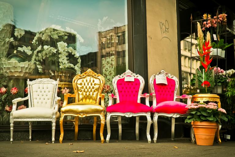 Keywords: road business urban city building company downtown shop sale district chairs throne kitsch gold pink curlicue white street photography window reflections düsseldorf