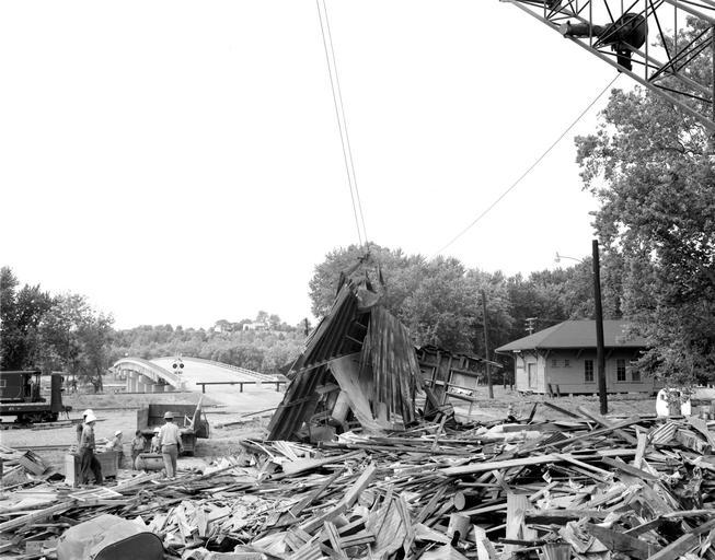 Keywords: richmond va usa hurricane agnes hurricaneagnes virginia flood flooding natural disaster richmond va usa naturaldisasterrichmondvausa blackandwhite monochrome outdoor black and white A crane was needed to clear collapsed buildings from the Rt. 6 and Rt. 690 intersection in Columbia, Virginia after Hurricane Agnes. The Rt. 690 James River Bridge is seen in the background. No. 72-1161, Virginia Governor's Negative Collection, Library of Virginia. A crane was needed to clear collapsed buildings from the Rt. 6 and Rt. 690 intersection in Columbia, Virginia after Hurricane Agnes. The Rt. 690 James River Bridge is seen in the background. No. 72-1161, Virginia Governor's Negative Collection, Library of Virginia.
