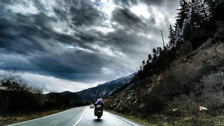 Keywords: road racing cloudy day dark clouds highway motorcycle