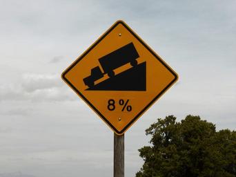 Keywords: road sign truck slope fall america