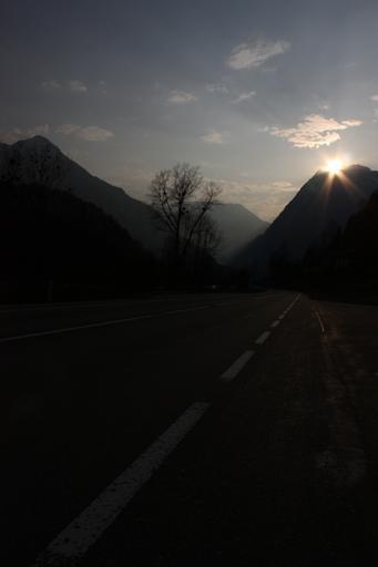 Keywords: road sunset abendstimmung tree mountain sky auto drive shadow austria