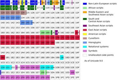 Keywords: Roadmap to Unicode SMP multilingual.svg en A graphical representation of Unicode's Supplementary Multilingual Plane SMP Each numbered box represents 256 code points nl Een grafische weergave van het Supplementary Multilingual Plane SMP van Unicode Elk genummerd vakje stelt 256 code points voor de Eine grafische Darstellung der Supplementary Multilingual Plane SMP des Unicode-Standards Jedes Kästchen steht für 256 Codepunkte ru Схематичное п едставление дополнительной многоязычной плоскости SMP Юникода Каждая п онуме ованная ячейка соде жит 256 кодовых позиций uk Схематичне уявлення додаткової багатомовної площині SMP Юнікоду Self-made using this perl script and information from http //www unicode org/ Unicode 2016-07-31 Drmccreedy left thumb English-only version Translate yes Purge Unicode Unicode SMP Writing systems |