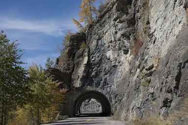 Keywords: roadway mountain tunnel landscape glacier park national montana travel road journey scenery lane rocks countryside view scenic usa