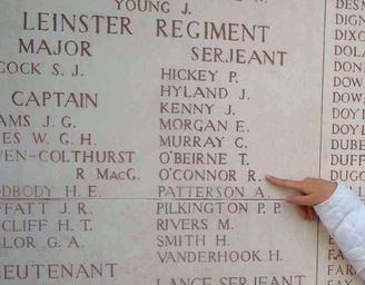 | Keywords: Robert O'Connor, Menin Gate, Ypres.jpg Robert O'Connor of The Leinster Regiment on the Menin Gate wall panel 44 Ypres Belgium <br> who was killed on the 31st July 1917 during the Third Battle of Passchendaele own Osioni 2007-07 Robert O'Connor Menin Gate |