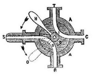 Keywords: Robinet à 4 voies, Papin.jpg Le robinet à 4 voies peut être considéré comme le tout premier système de distribution Papin l'a inventé et mis en application dans sa machine à transporter au loin la force des rivières Le robinet à 4 voies était censer distribuer le vide tantot au cylindre de gauche tantôt au cylindre de droite PD-old Denis Papin |