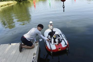 | Keywords: RoboBoat 150710-N-PO203-123.jpg en 150710-N-PO203-123 VIRGINIA BEACH Virginia July 10 2015 A student from the University of Ulsan in South Korea awaits word from his team to release their autonomous surface vehicle during a practice run prior to the start of the 2015 AUVSI Foundation and Office of Naval Research-sponsored RoboBoat competition held in Virginia Beach Virginia U S Navy photo by John F Williams/Released 2015-07-10 Master Chief Petty Officer John Williams https //www dvidshub net/image/2055584 150710-N-PO203-123 2015-07-11 06 03 VIRGINIA BEACH VA US PD-USGov-Military-Navy Office of Naval Research Images from DoD uploaded by Fæ |